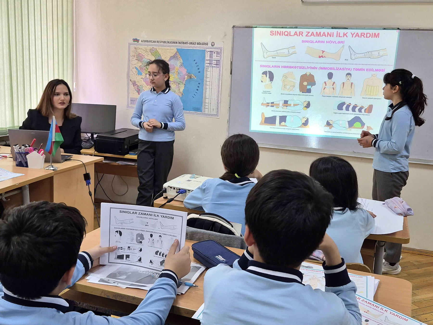 Tədbirlərdə mülki müdafiənin məqsədi və əhəmiyyəti barədə şagirdlər məlumatlandırılıb. Həmçinin yanğının söndürülməsi, yaralılara tibbi yardımın göstərilməsi, kimyəvi zəhərlənmə zonasının lokallaşdırılması, obyektə kimyəvi kəşfiyyatın təşkili ilə bağlı zəruri tədbirlərdən bəhs olunub. Ətrafdakı radiasiyanın müəyyən olunması, əleyhqaz və digər vasitələrdən istifadə qaydaları şagirdlərə izah edilib.